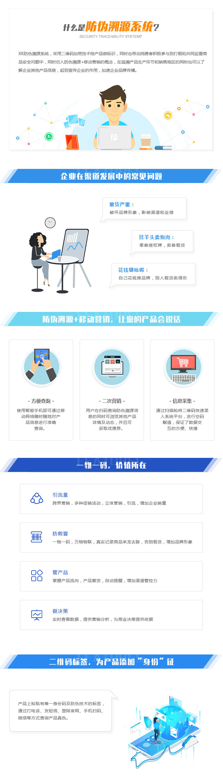 防伪溯源系统、防伪系统、防伪管理系统、防伪标签一物一码、防伪标签系统、二维码防伪系统、防伪查询系统、防伪防窜货系统、防窜货小程序,一体化解决产品防伪/防窜货/溯源/营销难题展开