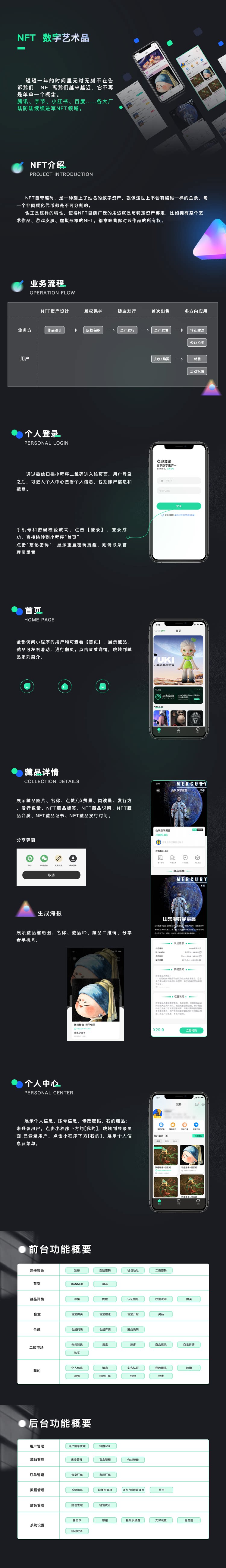NFT数字藏品在目前已经成为一种发展趋势,通过搭建自营数字藏品平台能够快速实现变现,后期通过交易分红获得长期收益。产品功能:登录注册实人认证:每个用户注册后通过实名认证可生成钱包地址,后期通过钱包地址作为身份凭证进行藏品流通交易;平台通过限时、限量发售藏品能一定程度激活用户活跃度,增加平台活跃性,阿里云通过提供丰富的云资源架构(包含云服务器、负载均衡、云数据库、弹性伸缩、蚂蚁链等)为平台每次发售活动提供强有力的技术支撑;同时平台结合当下流行的数字藏品平台营销方式例如盲盒抽奖、藏品合成、藏品空投、白名单、优先购等丰富的营销功能去丰富市场增加平台的市场核心竞争力,吸引用户、留住用户。同时我们提供多平台开发能力,支持h5/APP/小程序等多平台建设,通过多平台建设为平台提供多维运营方式,增加用户粘性,焕发平台生命力。