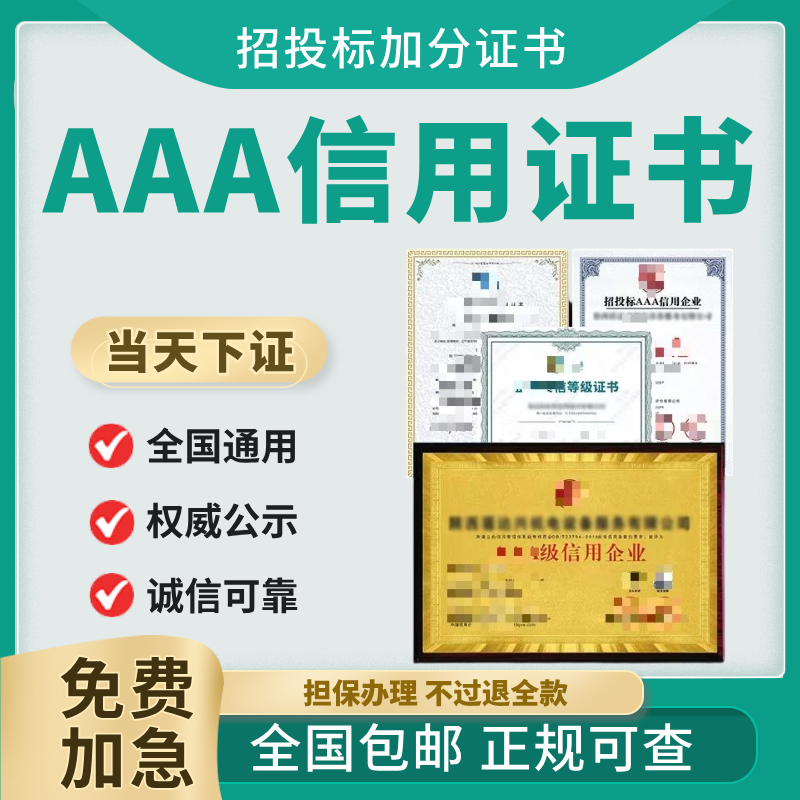 代办aaa信用等级证书招投标加分体系企业管理荣誉资质证书3a认证