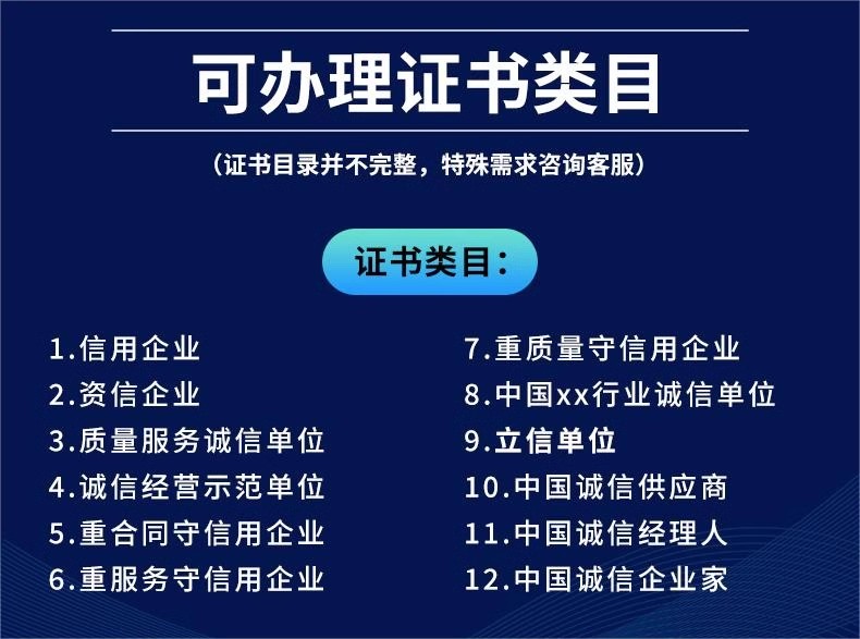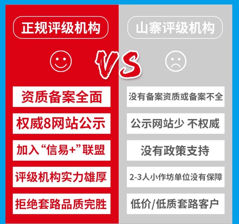 提升品牌形象:彰显企业诚信与实力,增强客户、投资者及社会信任。 增强市场竞争力:在招投标、商务合作中作为“信用名片”,优先获得合作机会。 政府项目加分:申报政府项目时作为前提条件或直接加分项,提高中标概率。 优化融资条件:银行及金融机构更倾向提供高额度贷款、低利率融资。 降低交易成本:减少合作方的保证金要求,简化采购流程,节省交易成本。 促进国际贸易:作为国际认可的信用凭证,助力拓展海外市场。 供应链优势:成为上下游合作伙伴的信用标准,提升赊销谈判能力。 管理透明度提升:展示企业经营与服务的规范性,增强消费者信心。 政策支持依据:符合国家信用体系建设要求,争取政府扶持基金。 可持续发展基础:通过持续信用管理降低风险,为企业稳健发展提供保障