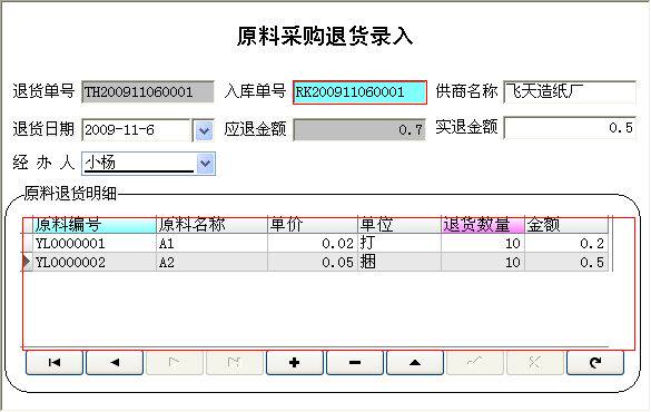 [产品编号]获得输入焦点(光标)时,将显示一个辅助输入的列表,通过从列表中选择合适的行次后,字段[产品编号]将被填充对应的值。同时,字段【产品名称】【单位】【成本价】【销售价】【入库单号】将被同时更新,不再需要手工输入。