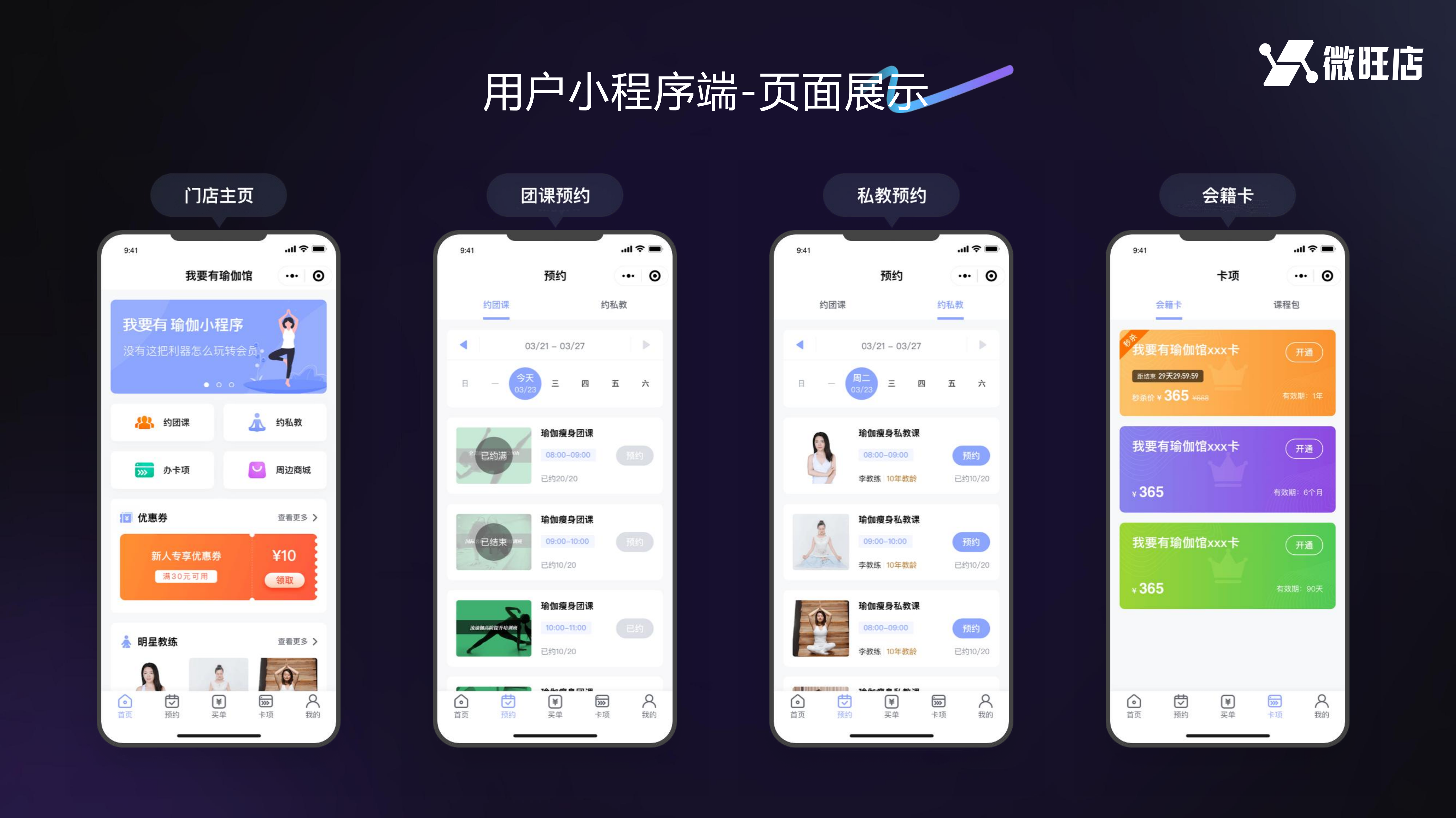 瑜伽馆小程序_瑜伽课程预约_会员在线办卡系统-微旺店