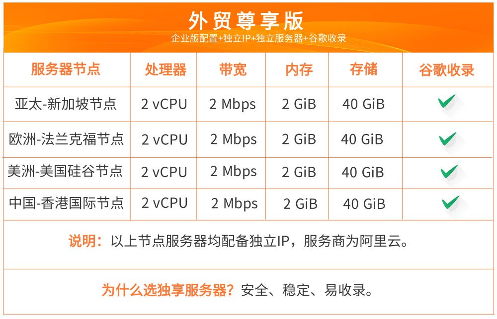 | 亚太-新加坡节点【独立服务器独立IP保谷歌收录】 | 版本基础价格 | -- | 3280元/年 | -- | 3280元/年 |