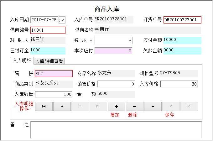 该系统在功能方面主要包括了:基本信息(单位信息、商品信息、供货商信息、客户信息);商品进货(商品订货、商品入库、入库查询、入库退货、退货查询);商品销售(商品销售、销售查询、销售退货、退货查询);库存管理(库存明细、库存汇总、库存查询、缺货提醒、超储提醒);财务管理(供货商还款、供货商还款合计、客户还款、客户还款合计、期间利润统计)以上功能。