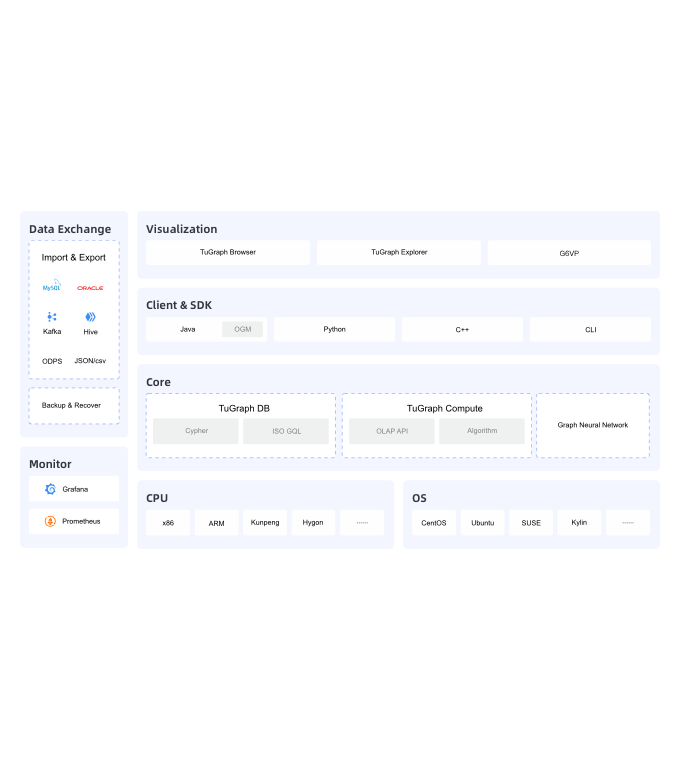 TuGraph提供Web可视化操作界面,便于用户快速上手;同时支持Cypher、存储过程、可视化查询等操作,灵活易用。