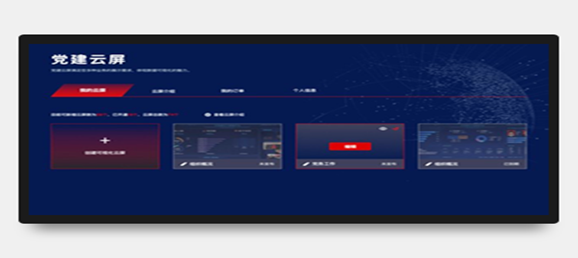 党建云屏是将传统大数据视图大屏功能进行上云,通过云端部署,实现数据视图的移动化、智能化,更适用多种党建场景,为党组织提供更便捷、更灵活展现方式,将党组织的宣传工作与党务工作实现可视化转换,一图懂所有,一屏分“秋色”!