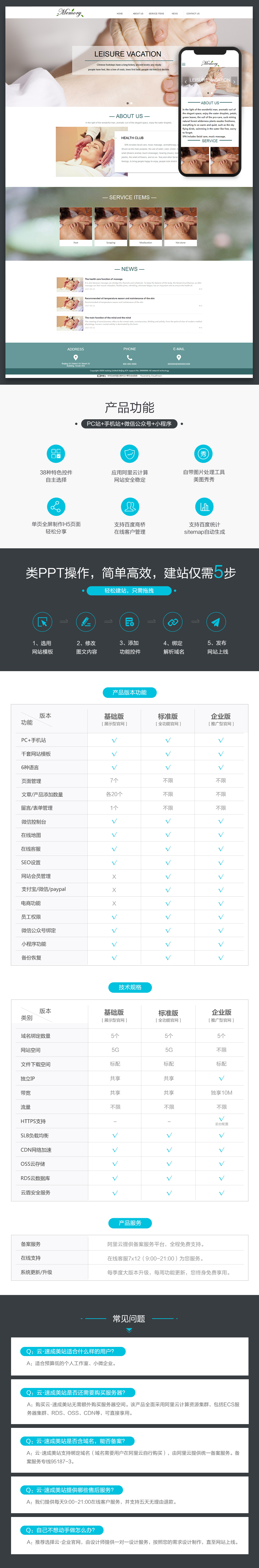 标配阿里云服务器,由阿里云提供免费备案服务,一站集成:PC网站+手机网站+微信公众号+小程序。购买产品后进入产品管理地址:阿里云控制台-云市场-已购买服务-免登 |